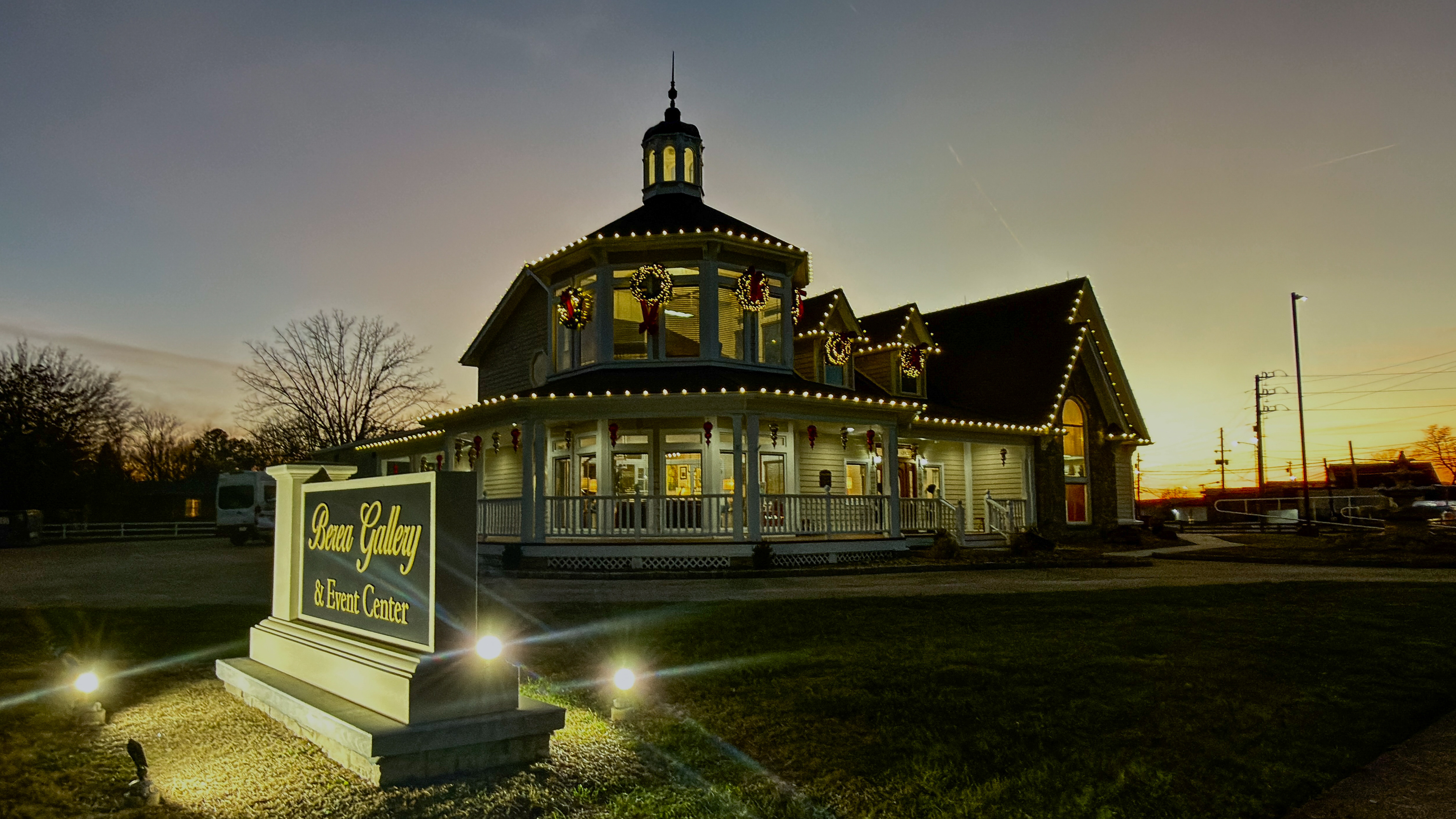 The night shot of our beautiful Berea Gallery & Event Center